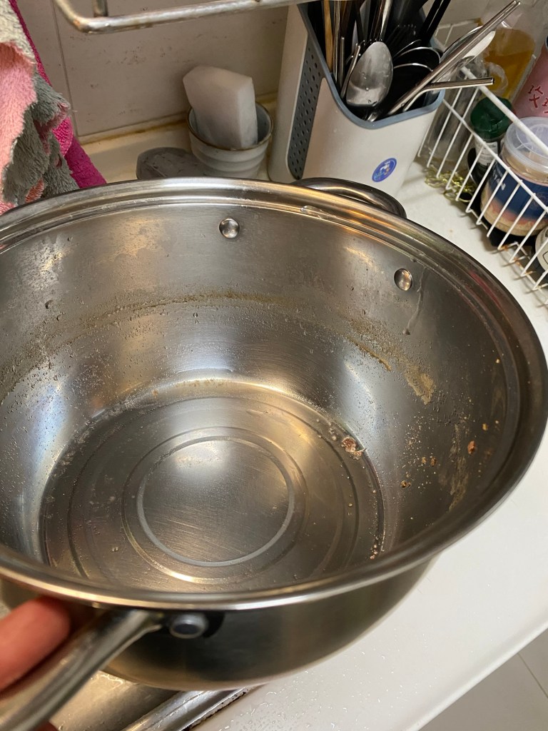 加點洗碗精再加一點水,就開始刷刷洗洗,發現刷起來根本毫不費力,上面的渣渣黏在上面的很容易的就清除掉了,清水沖掉之後,看看成果吧。